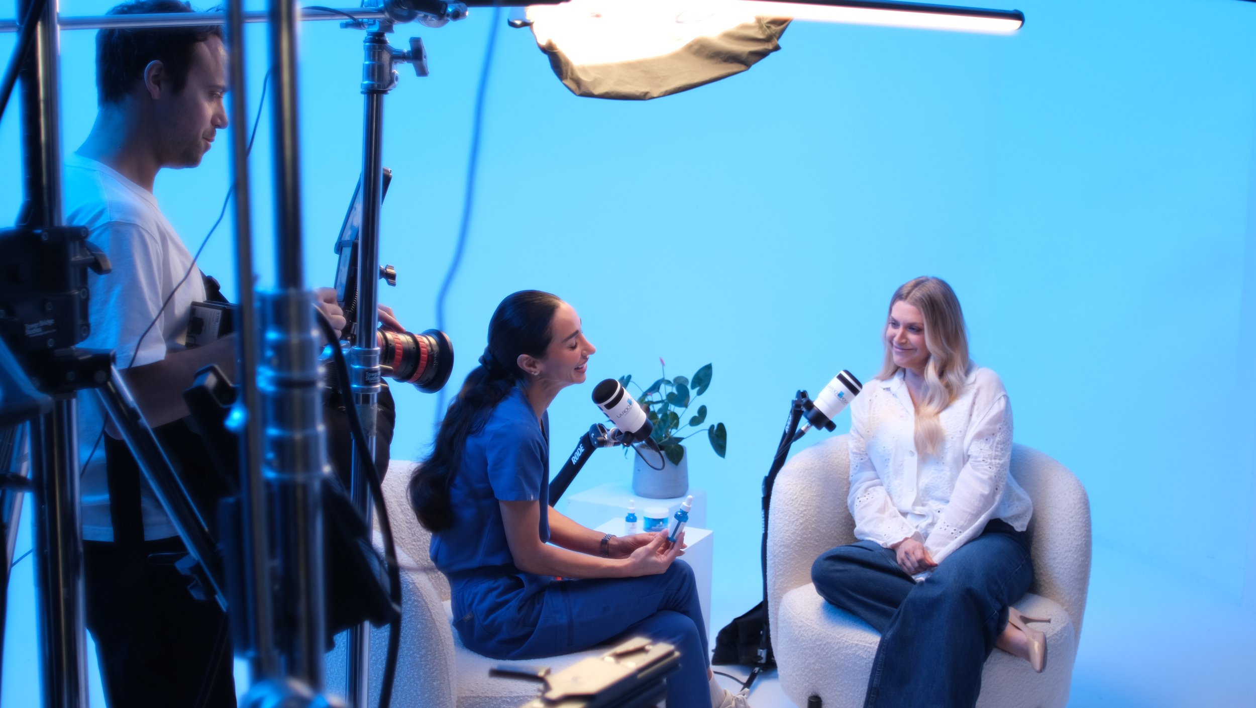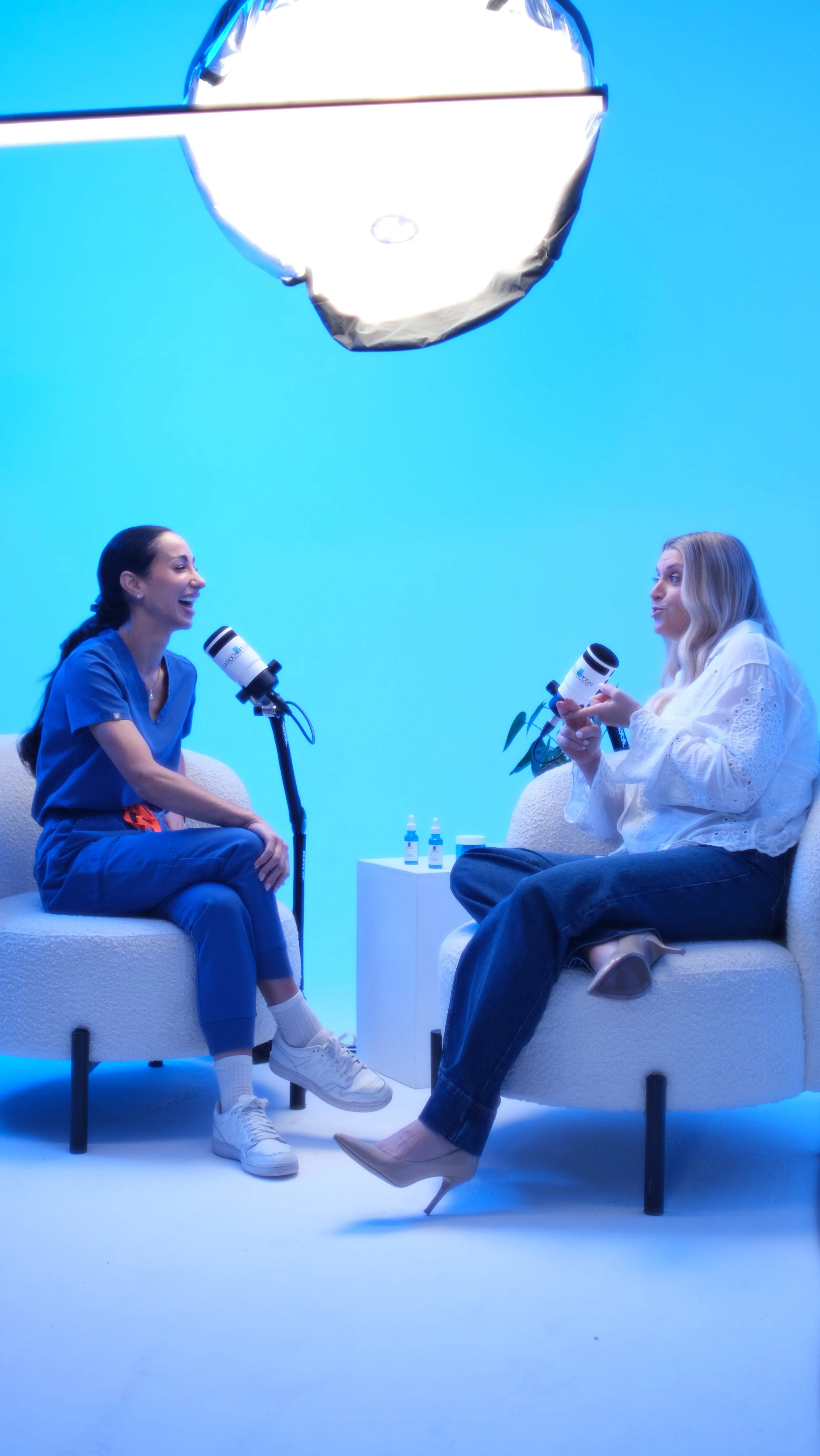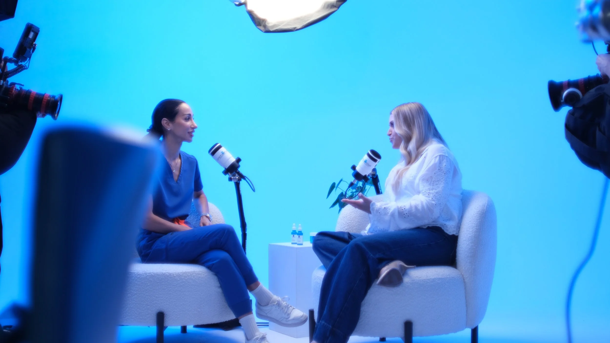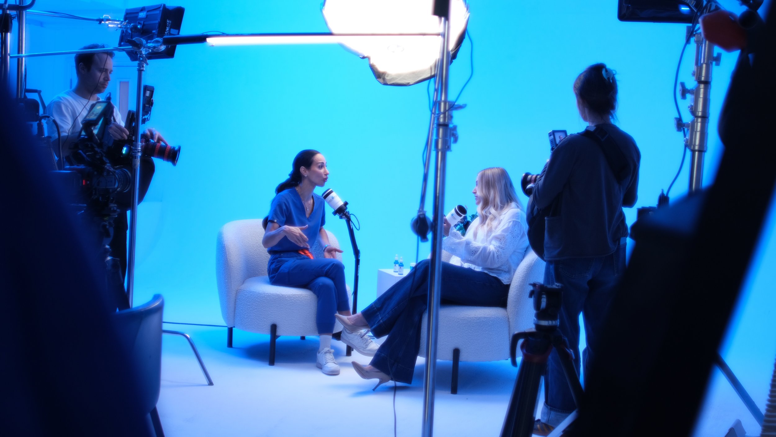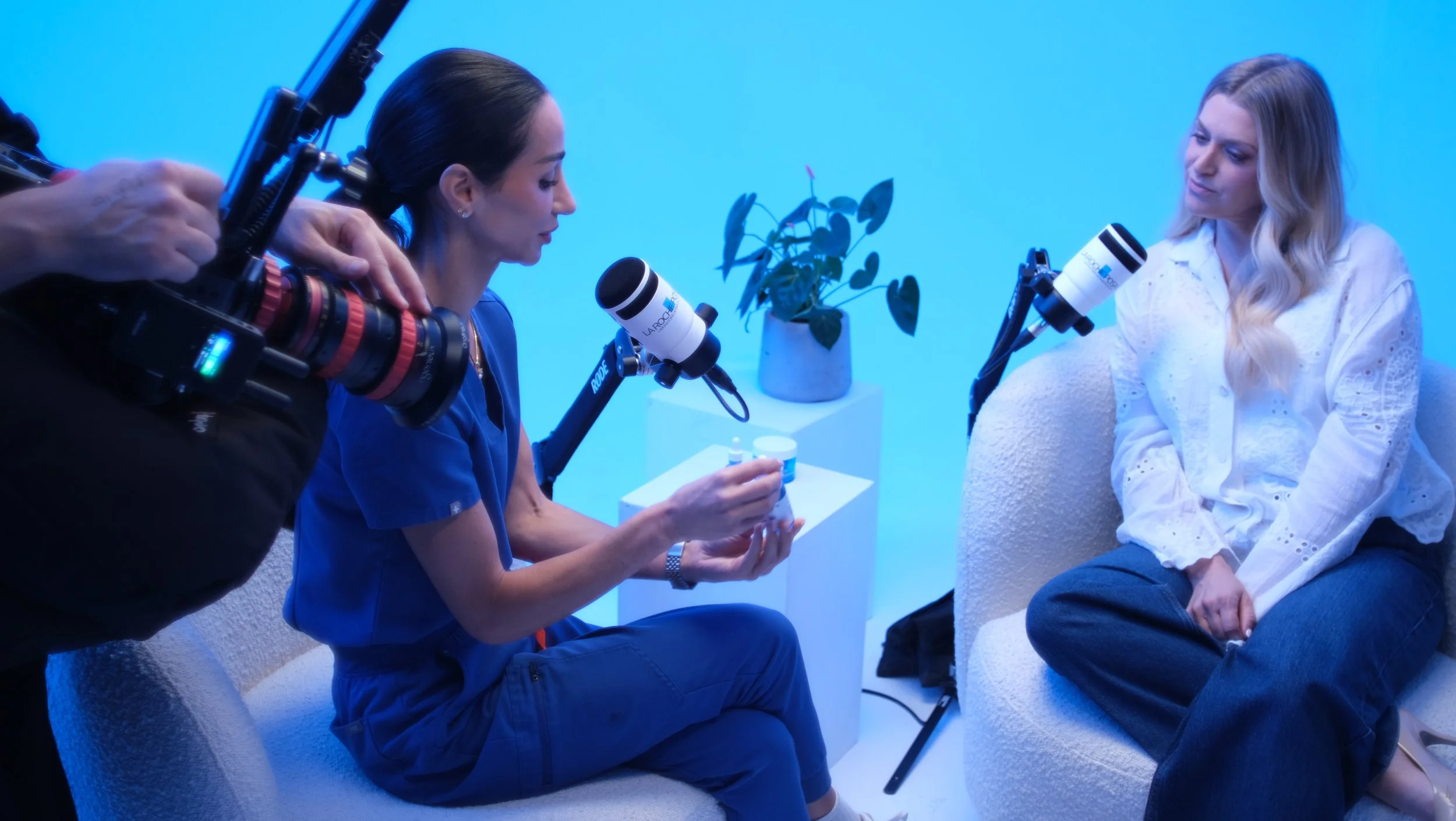 La Roche-Posay came to us to create and produce the video campaign for their new Hyalu B5 Serum. They had the campaign name “Deep Chats with” and the talent Anna Williamson secured, but looked to us for guidance for the rest. We decided on a playful, informative podcast-style campaign. We elevated the visuals with an infinity cove set-up drenched in LRP-brand blue and a soft, cinematic lighting set up. Through discussions with the talent and research we aligned ourselves with two key universal themes for their audience; Ageing and Sleep. Anna was to share her skin journey, with advice, validation and support from dermatologist Dr. Nora. We think the results speak for themselves.